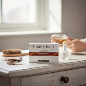PHANERE BOOST complément cheveux, peau et ongles qui renforce, réduit la chute et améliore l’éclat et la vitalité.