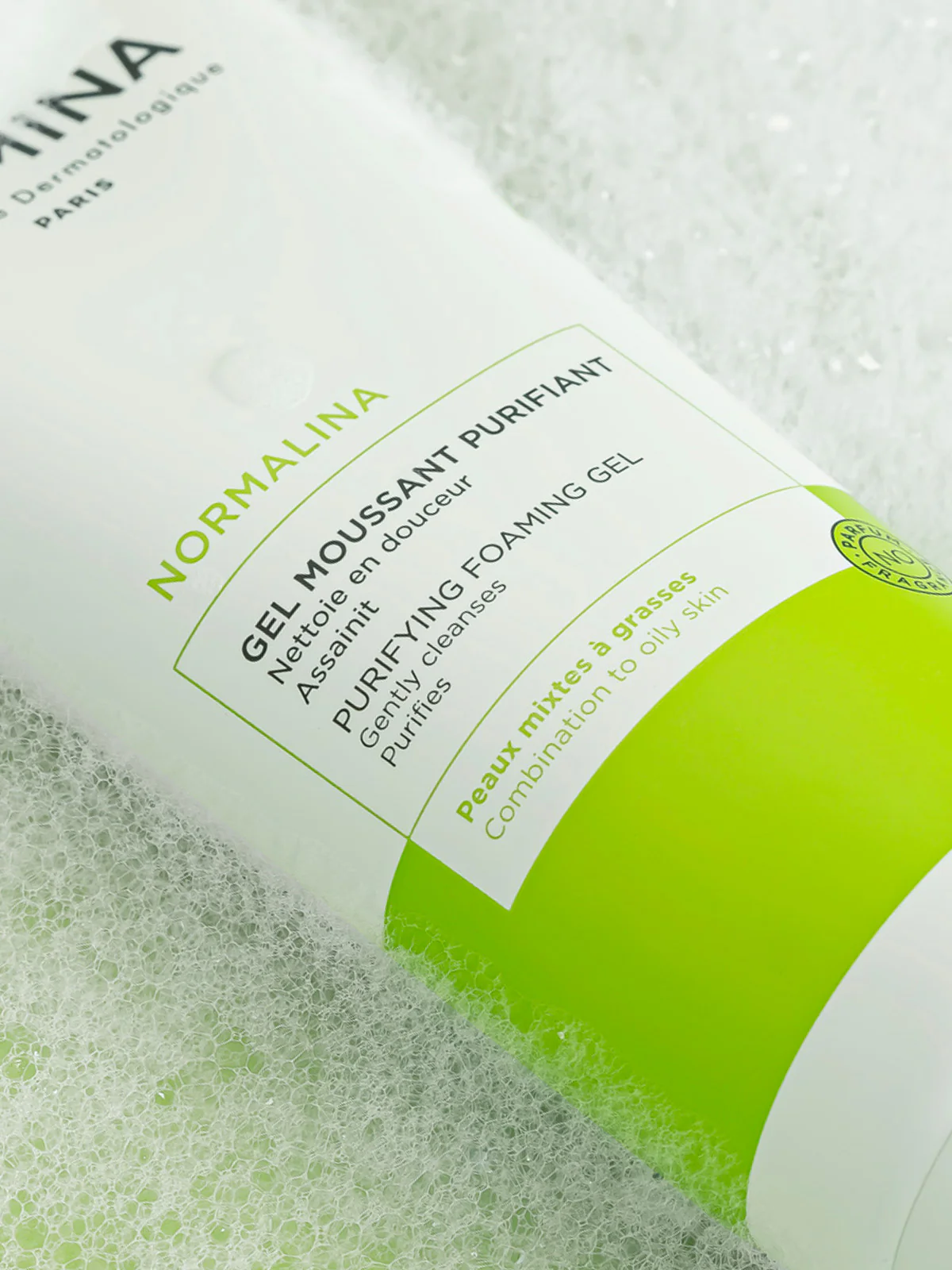 Le Gel moussant de DERMINA, spécialement formulé pour les peaux normales à mixtes, nettoie en douceur.