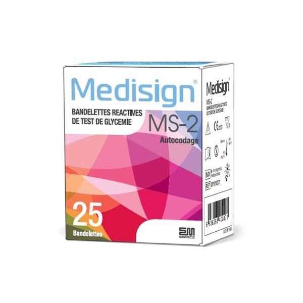 MEDISIGN MM1100 – Un glucomètre portable utilisant la méthode électrochimique avec Glucose Oxidase (GOx) pour des résultats précis en 5 secondes . Idéal pour surveiller la glycémie à domicile ou en milieu médical. Stocke 300 résultats avec date et heure. Option Bluetooth (MM1100 BT) pour transfert sans fil.