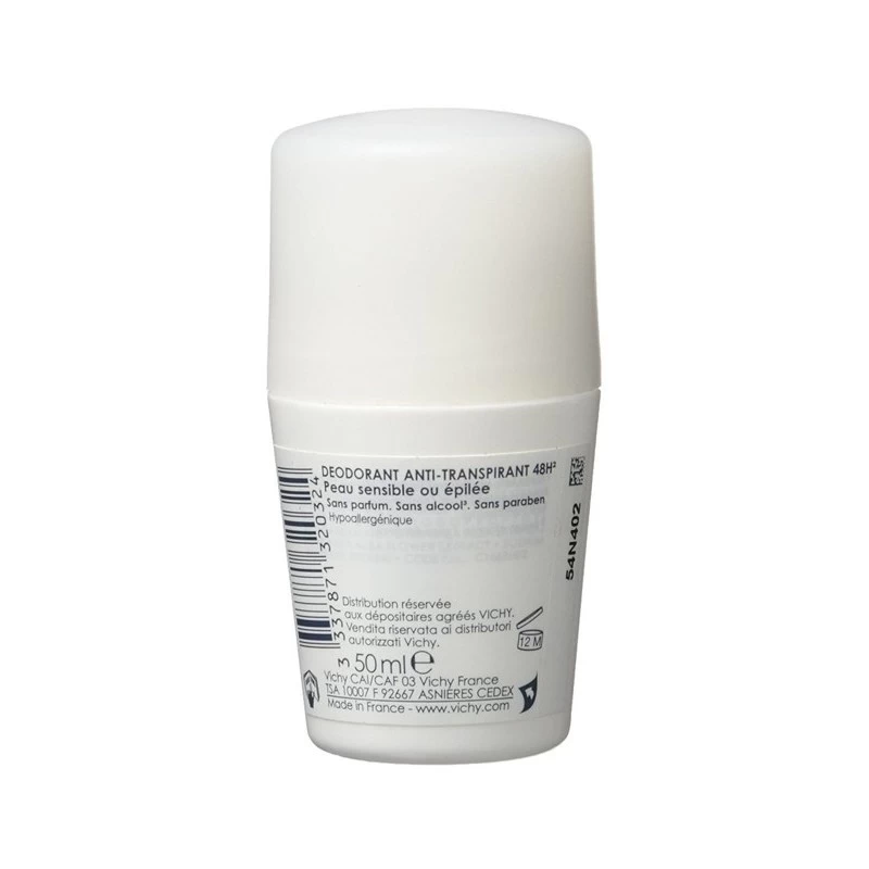 Vichy Déodorant Anti-Transpirant 48h Peaux Sensibles Roll-On 50ml EST Un déodorant adapté aux peaux très sensibles et épilées qui confère à votre peau une efficacité anti-transpirante 48h et une incroyable tolérance.